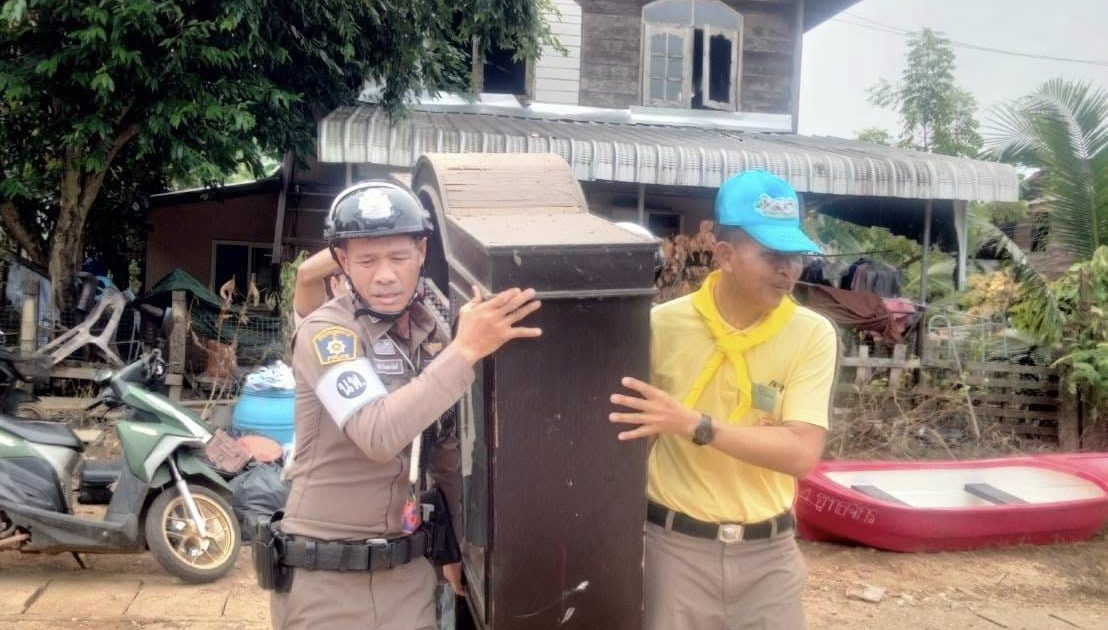 งานจราจร สภ.ศรีสงคราม ให้การช่วยเหลือครอบครัวที่ได้รับผลกระทบจากอุทกภัยน้ำท่วม ในเขตพื้นที่รับผิดชอบ