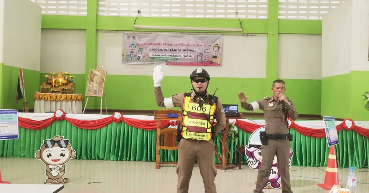 สายตรวจจราจร ว.4 เพื่อบรรยายกฎหมายจราจรเบื้องต้น ตามโครงการการฝึกอบรม นักเรียนรุ่นใหม่มีใบขับขี่ ณ โรงเรียนสนธิราษฎร์