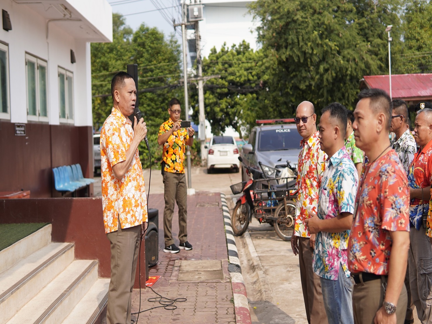 พ.ต.อ.ศรีนคร นัยวัฒน์ ผกก.สภ.ศรีสงคราม ประธานในพิธี พร้อมให้โอวาส อวยพร และมอบของมงคล แก่ข้าราชการต