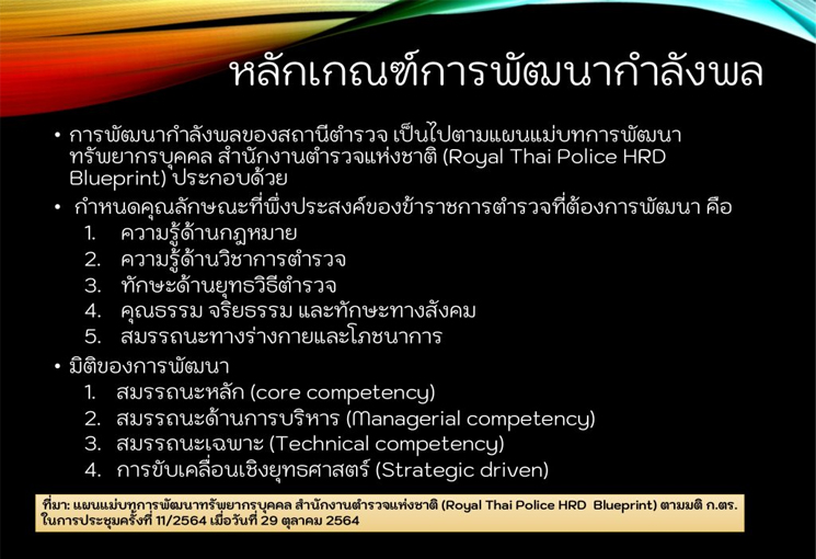 15. แผนแม่บทการพัฒนารัพยากรบุคคล สำนักงานตำรวจแห่งชาติ (Royal Thai Police HRD Blueprint)